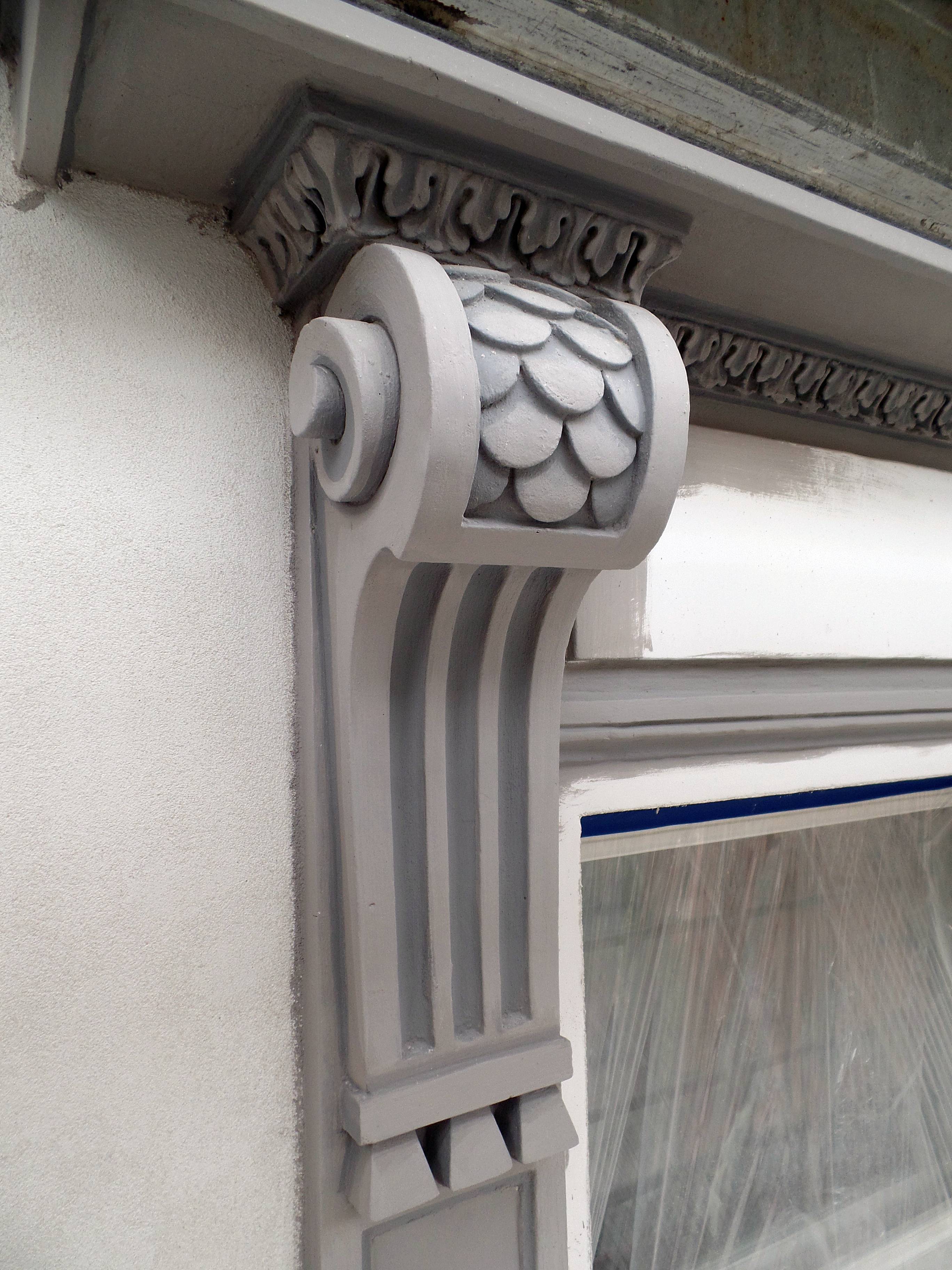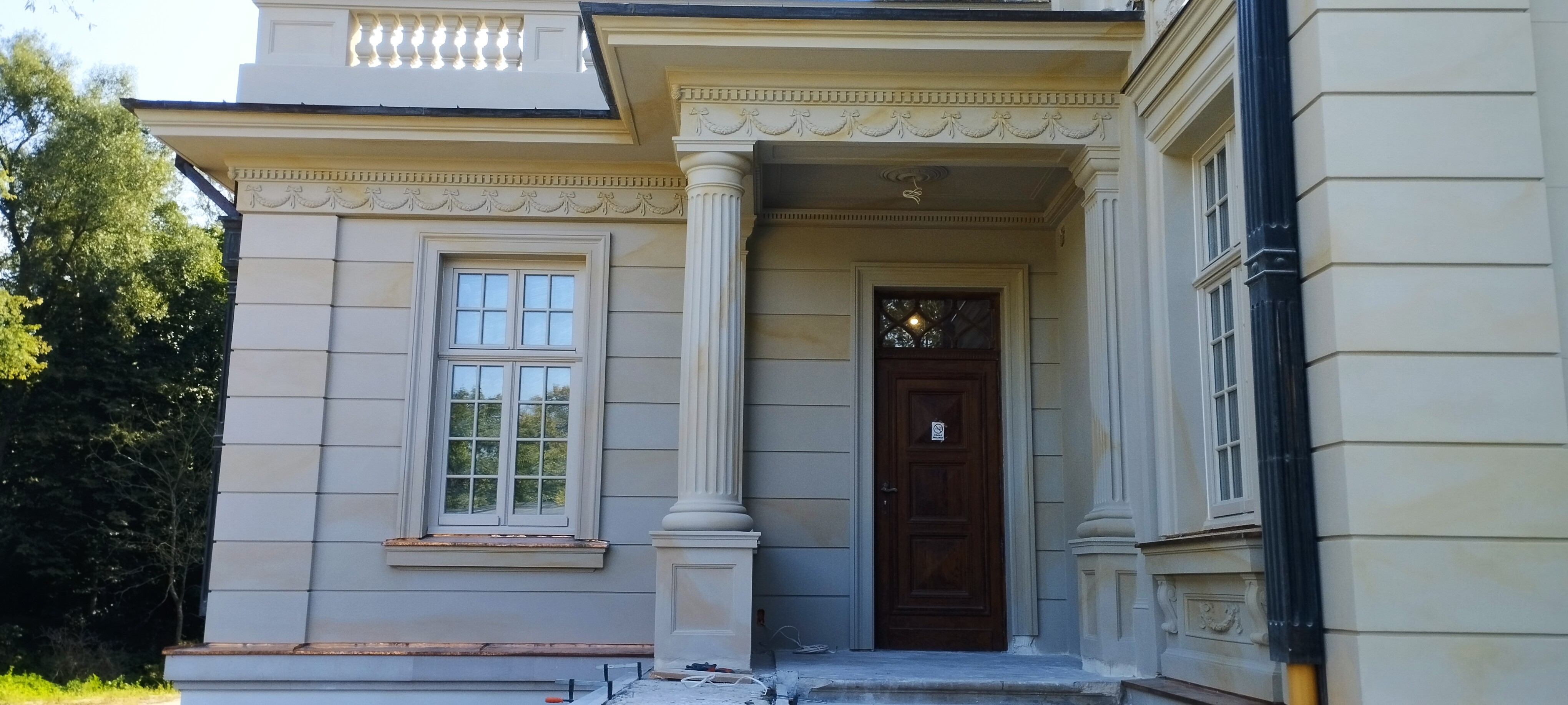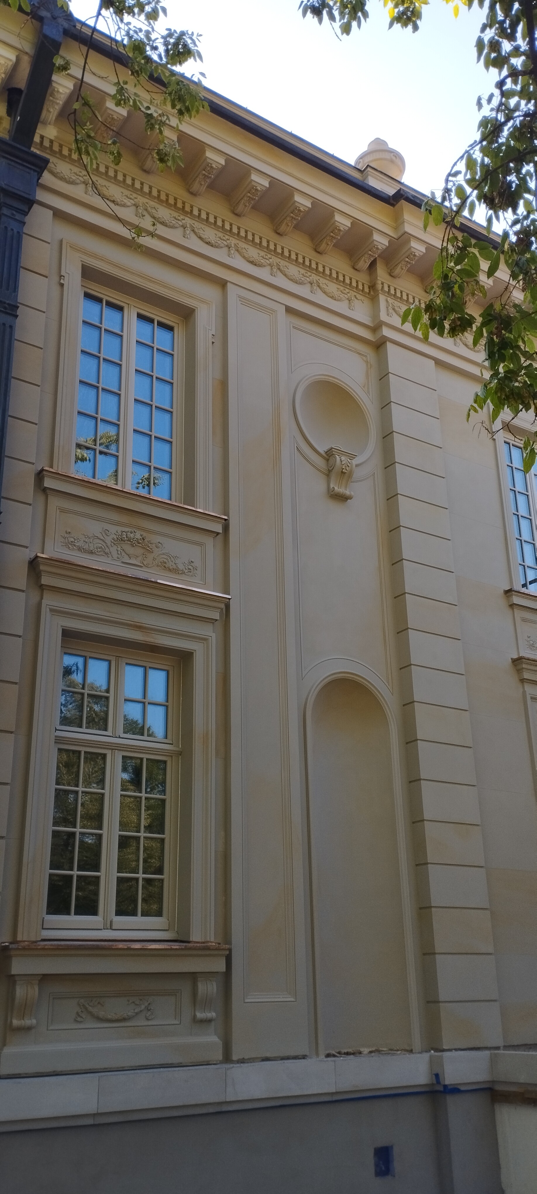 zabytkowych elewacji, wnętrz, kamienia, cegły, detali rzeźbiarskich i sgraffit. Zajmuję się scaleniami kolorystycznymi kamienia a także estetyzacją betonu architektonicznego. Realizuję projekty malarskie, zarówno we wnętrzach współczesnych i zabytkowych- rekonstrukcje malarskie a także renowacja istniejących warstw malarskich. Wykonuję